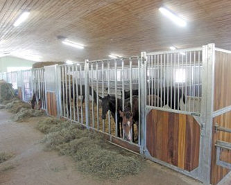 Der in dem Jahr 2000 erbauten Zuchtstall, welcher 2009 durch Umbau des Kuhstalls erweitert wurde, beherbergen wir insgesamt 90 Pferde, darunter sind Zuchtstuten, Rentner sowie Fohlen und Jungpferde zur Aufzucht. Die Mehrzahl sind jedoch Einstellerpferde.